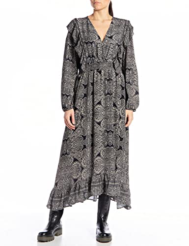REPLAY W9785 Vestido, 010 Black/Sand, S para Mujer